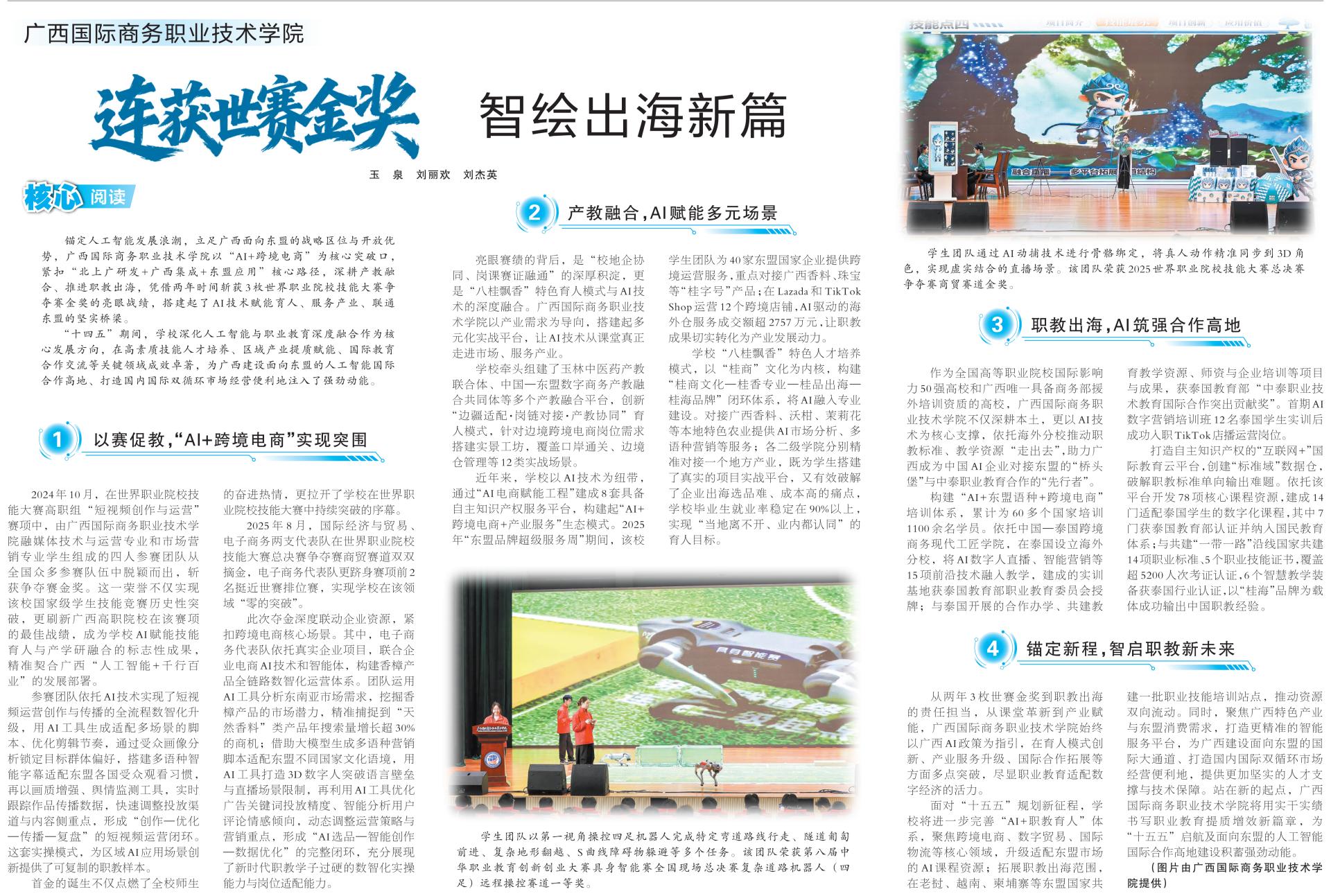 • 为深入贯彻落实关于加强新兴领域党建工作的重要精神,进一步加强校企合作,提升双方党组织的凝聚力与影响力,1月20日,国际贸易学院教工党支部、学生党支部与广西启迪创新跨境电子商务有限公司党支部前往茜英5G-A沉浸式大空间开展主题为“红色足迹寻初心,共建互学促提升”的校企党建共建活动。国际...