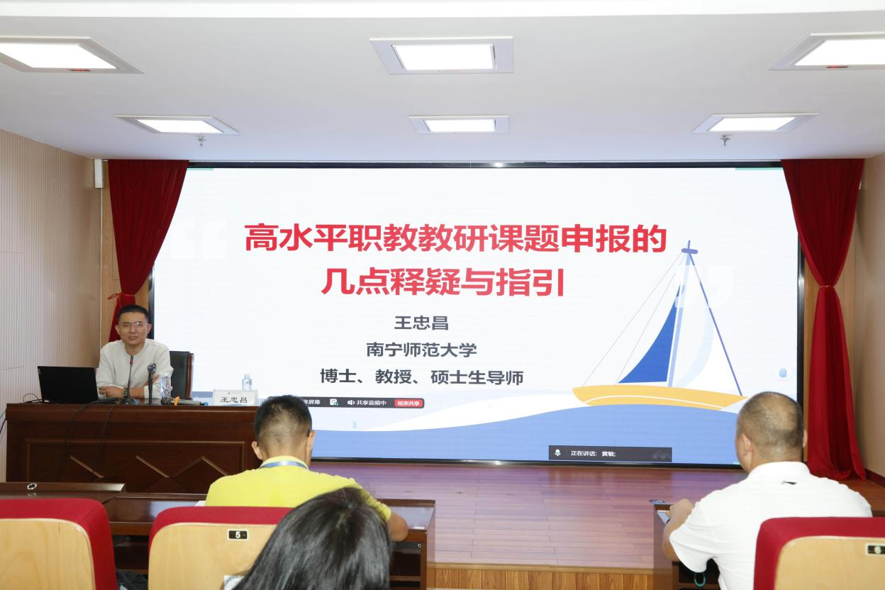 为深入贯彻落实学校教科研工作部署,提升我院教师课题申报能力与科研素养,10月31日上午,人文教育学院联合教务科研处、马克思主义学院、图书馆(档案馆)在大学东路校区图书馆八楼学术报告厅成功举办职教教研课题申报专题讲座。本次讲座特邀南宁师范大学教授王忠昌担任主讲,人文教育学院全体教职工及其他校内感兴趣的教师参加了此次讲座。