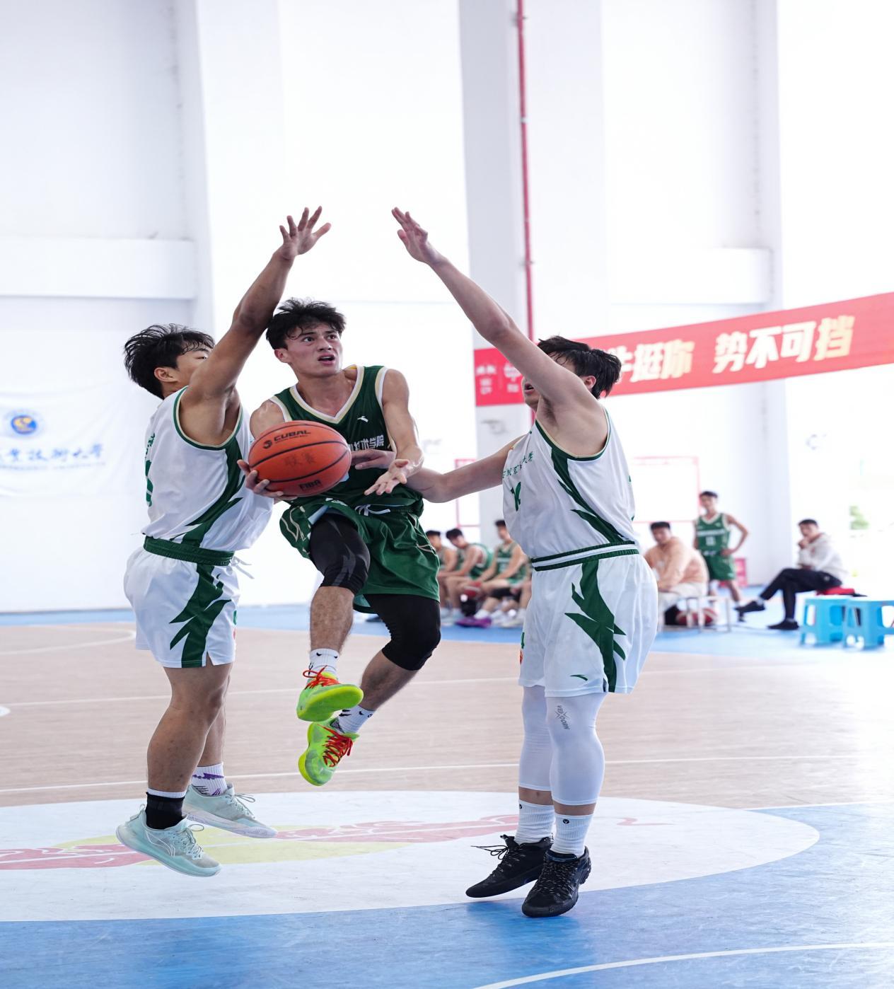 本届赛事云集全区各高职院校篮球劲旅,竞争尤为激烈。我校男篮在小组赛中稳扎稳打,以扎实的战术执行和稳固的防守成功晋级。进入淘汰赛后,面对强劲对手,队员们敢打敢拼、每球必争。在关键排名赛中,全队克服体能极限,依靠默契的配合与精准的攻防拿下胜利,最终锁定第六名的优异成绩。