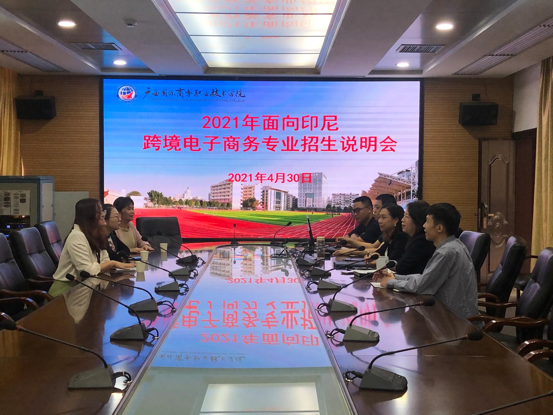 为加强我院国际学生招生宣传影响力、帮助身处海外的国际学生了解我院国际化办学特色和跨境电子商务专业。近日,国际交流处首次以线上直播形式举办了一场面向印尼的跨境电子商务专业专场国际学生招生说明会,国际贸易系部分教师也参加了会议。