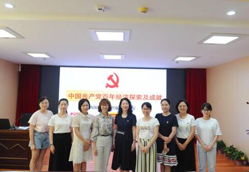 为深入学习贯彻习近平总书记在党史学习教育动员大会上的重要讲话精神,扎实推进党史学习教育走深、走实、走心。6月8日上午,学院副院长刘杰英以《中国共产党百年经济探索及成就》为题,在图书馆8楼小报告厅为国际贸易系党总支全体党员讲授了一堂党史学习教育主题党课。