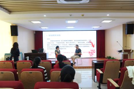 韦利冰老师先从一幅漫画开始带大家了解心理健康状态,进而解释什么是心理危机,并列举大学生常见的心理危机事件有学业困难、人际冲突、恋爱情感、突发事件等,建议教师们从学生变化、疾病特点、持续时间、能力范围等几个要点识别学生心理危机。韦利冰老师还邀请2位教师进行现场模拟演练,使教师们更加直观地学习如何识别学生心理危机。