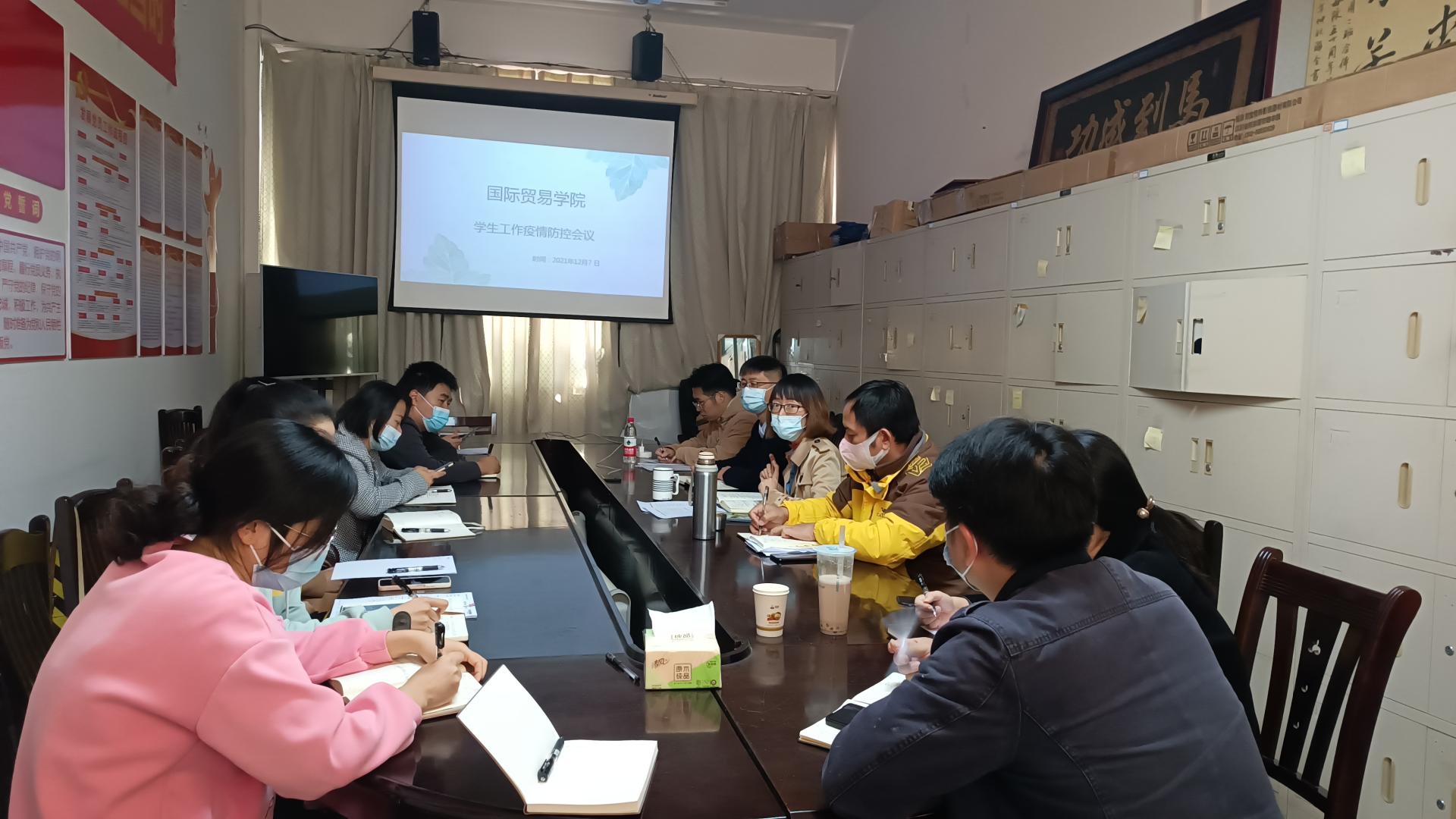 针对疫情新形势、新变化、新情况,为及时贯彻落实学校疫情防控有关会议精神要求,不断提高学生工作疫情防控工作的效率和质量。12月7日,国际贸易学院在3栋201会议室组织召开学生工作疫情防控专项会议。学院党总支书记邓菲、班子成员吴涛出席本次会议,全体辅导员、班主任参加,会议由团总支书记杨明主持。