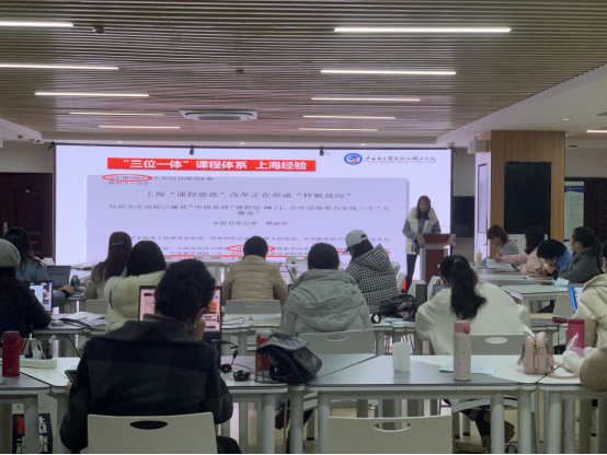 为帮助我院教师深化对“课程思政”精神实质和重大意义的认知,整体上掌握课程思政内容体系,根据不同专业人才培养特点设计和开发融入教学内容的课程思政元素,近日,国际贸易学院特邀会计学院农敬萍老师,举办了一场以“课程思政”为主题的培训。国际贸易学院全体教职员工参加,讲座由学院副院长邓海涛主持。