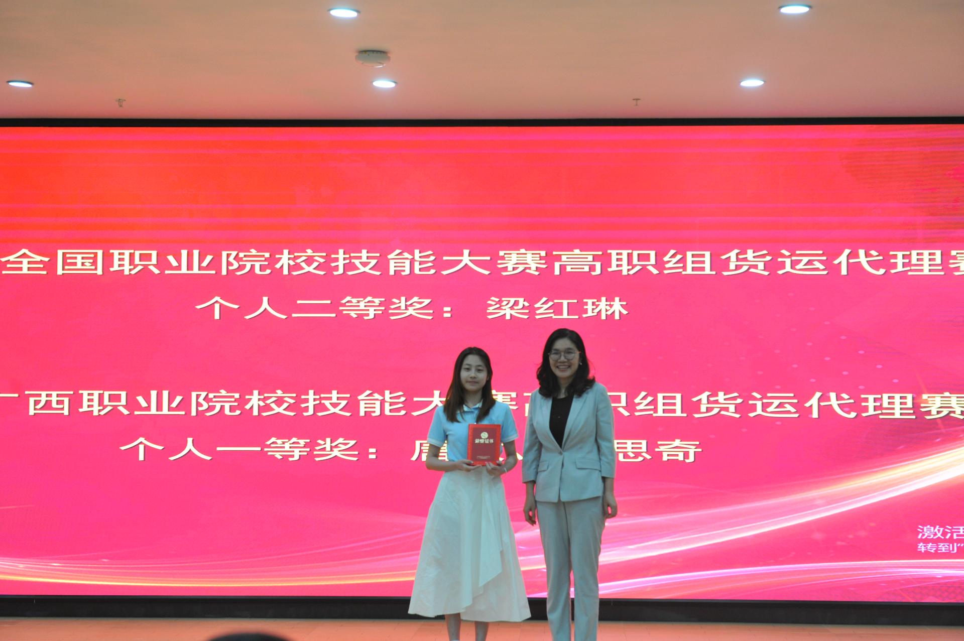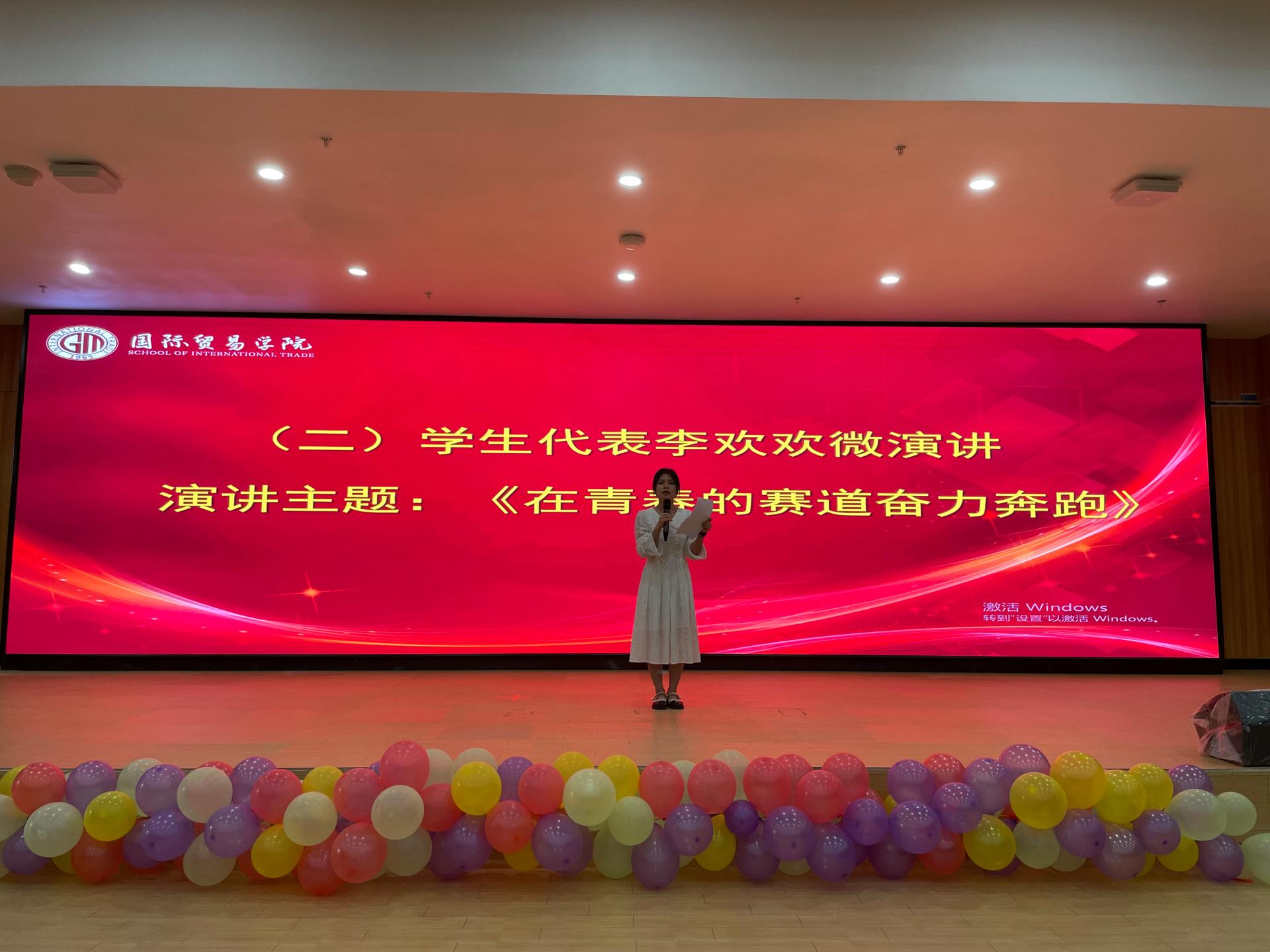 表彰大会共分为“问学”“通达”“致远”三个篇章。分别表彰了各级各类技能大赛、奖学金、创业比赛、团学活动等集体和个人奖项,获奖代表李欢欢、朱双燕从学习和学生干部角度发表了微演讲,分享了自己在国贸学院的奋斗青春、寻梦之旅,带着“长风破浪会有时 直挂云帆济沧海”的信念,志存高远、勇立潮头,努力做时代的“领航人”。