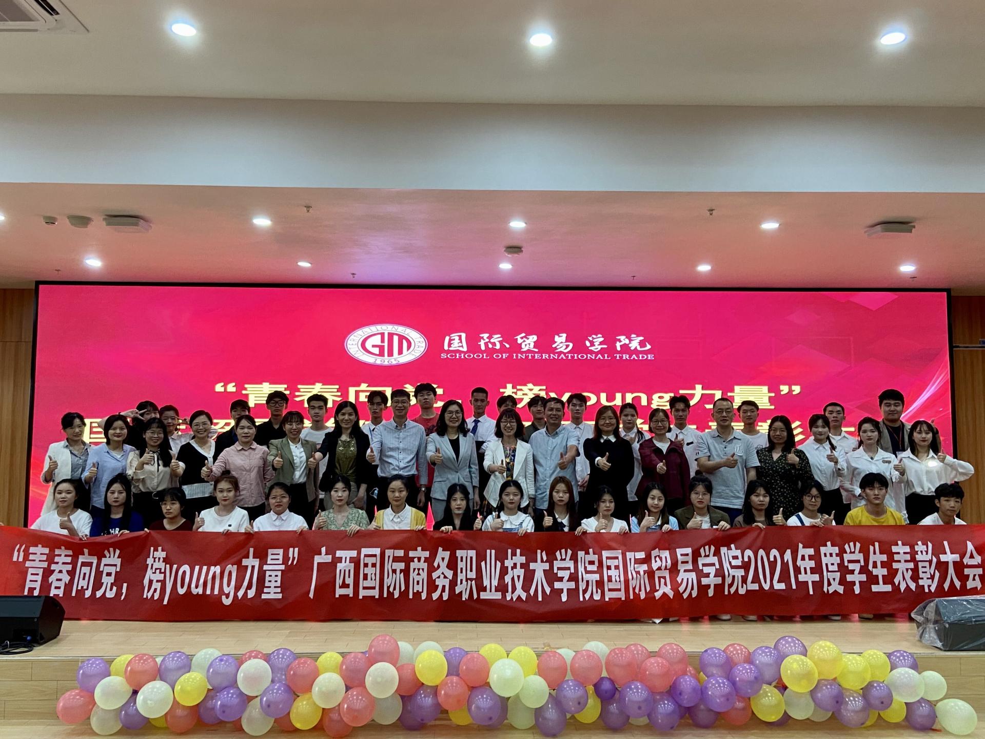 5月17日,我院“青春向党,榜young力量”2021年度学生表彰大会在东盟校区师生活动中心三楼报告厅隆重举行,大会对过去一年表现突出的先进集体和优秀个人予以表彰,激励同学们爱国荣校、勇毅前行,谱写新时代奋斗的绚丽篇章。国际贸易学院党总支书记邓菲、院长邓海涛及班子成员出席会议,教师代表、辅导员以及2020、2021级学生代表参加本次大会。