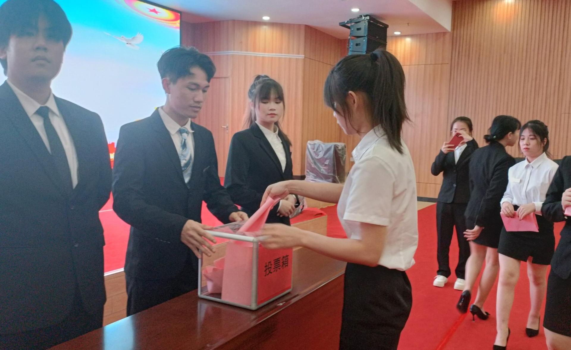 2022年6月16日晚,国际贸易学院第十七次学生代表大会顺利在师生活动中心三楼报告厅召开,国际贸易学院党总支专职副书记杨明出席大会,国际贸易学院辅导员以及学院的学生代表参加本次大会,会议由吕海瑜主持。