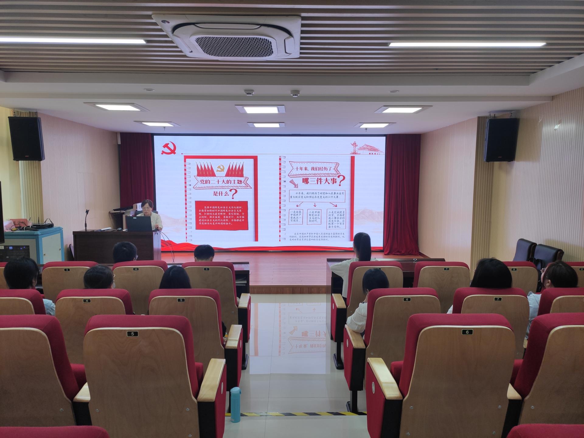 在集中学习党的二十大会议精神时,国际贸易学院学生党支部书记覃俭同志从深刻领会党的二十大的重大意义、深刻领会党的二十大的主题、深刻领会过去五年工作和新时代十年伟大变革、深刻领会开辟马克思主义中国化时代化新境界、深刻领会以中国式现代化全面推进中华民族伟大复兴的使命任务、深刻领会未来五年党和国家各项事业发展的战略部署、深刻领会以伟大自我革命引领伟大社会革命的重要要求、深刻领会团结奋斗的时代要求等八个方面,对党的二十大精神进行了解读。她还特别强调:“党的二十大报告中特别指出:国家的希望在青年,民族的未来在青年。身为教育工作者,深感责任重大、使命光荣。我们要牢记总书记的嘱托,坚持把立德树人作为中心环节,不断创新教育理念和方式,努力培养堪当民族复兴重任的时代新人。”