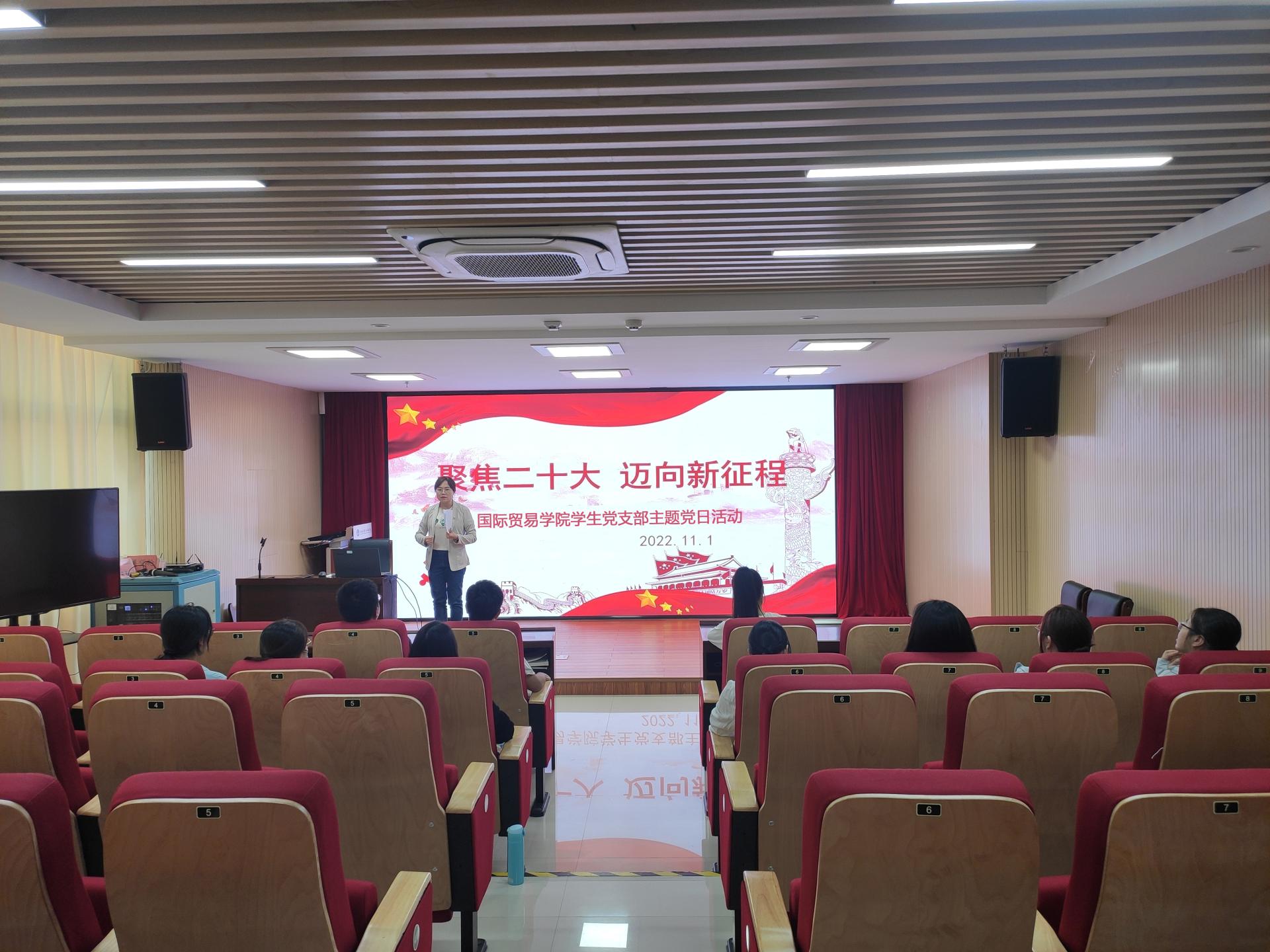 据悉,国际贸易学院学生党支部还通过组织全体党员、入党积极分子、入党申请人认真收看中国共产党第二十次全国代表大会开幕盛况,认真聆听了习近平总书记代表第十九届中央委员会向大会作报告。