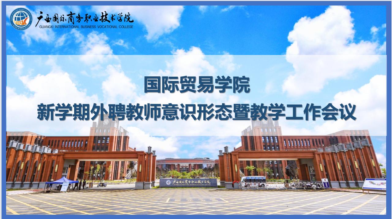 为进一步规范外聘教师教学行为、提升教学能力、保证教学质量。近期,国际贸易学院召开新学期外聘教师教学工作会议。国际贸易学院全体外聘教师及学院办公室主任、教学秘书参加会议。会议由学院副院长吴涛主持。