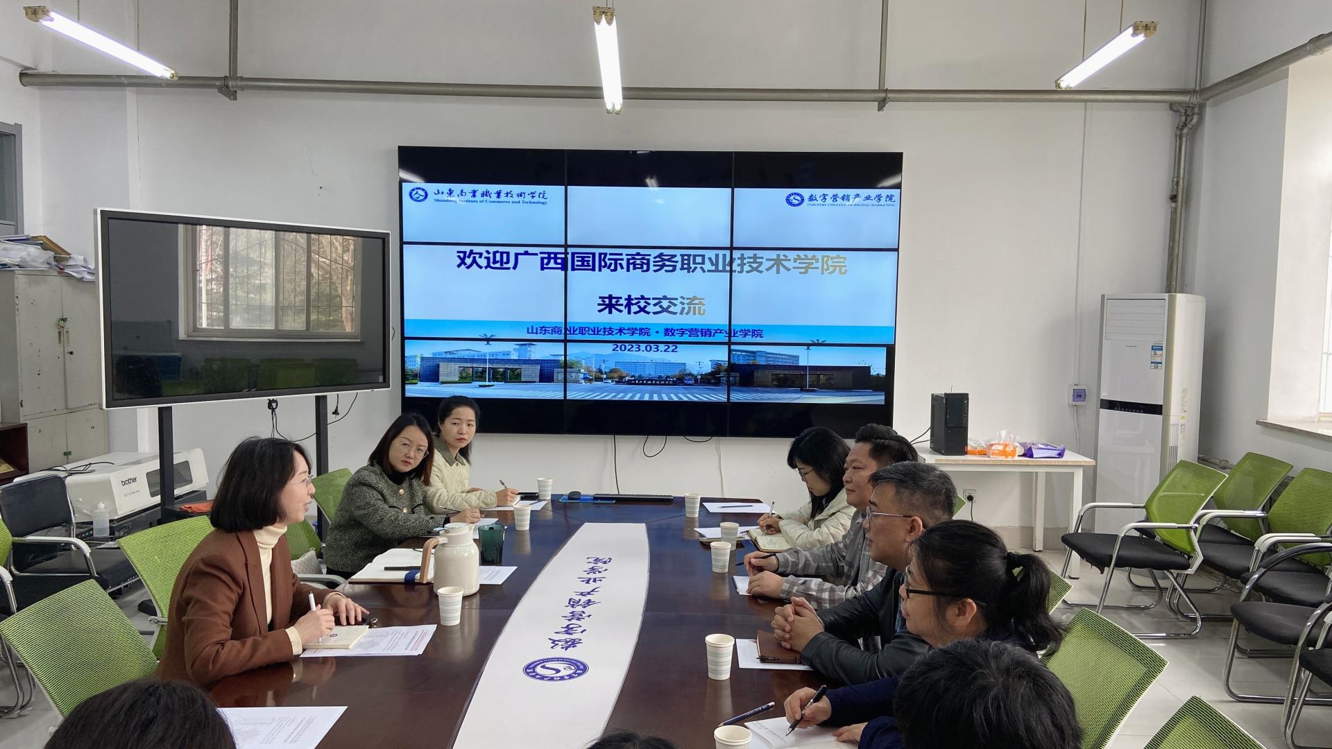 上午,山东商院数字营销产业学院的权小妍院长、张晓红副院长、国际商务专业人带头人程锦及相关老师接待我院教师。座谈会上,权小妍院长介绍了数字营销产业学院的发展历程和基本概况,同时分享了该学院在双高建设、教学改革、制度建设等方面的经验和做法。接着,张晓红副院长陪同参观了山东商业职业技术学院产业会客厅,介绍了该学院推动产教融合的先进做法和典型案例,使我院老师真切感受到山东商业职业技术学院在教学改革与创新方面的勇气和卓越成果。