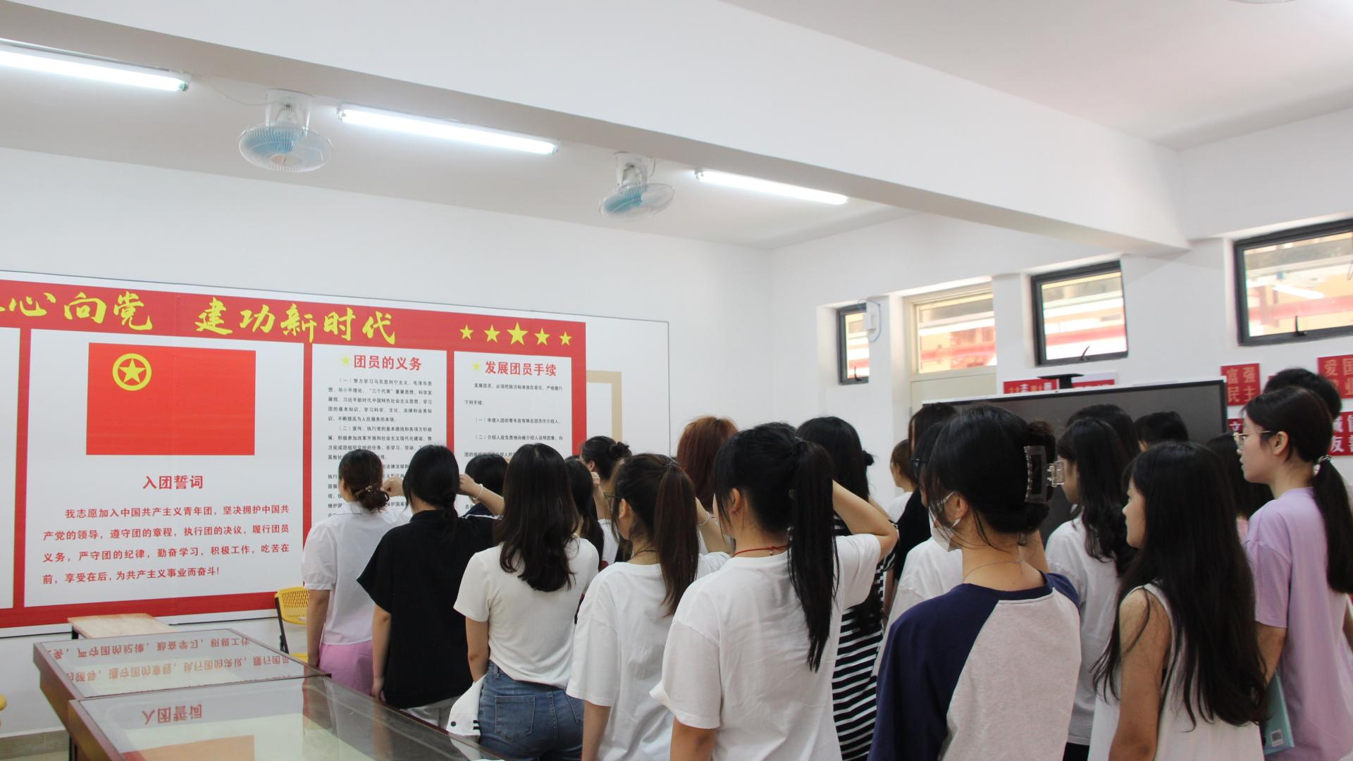 最后,全体团员青年高举右手,紧握右拳,在领誓人的带领下重温入团誓词。