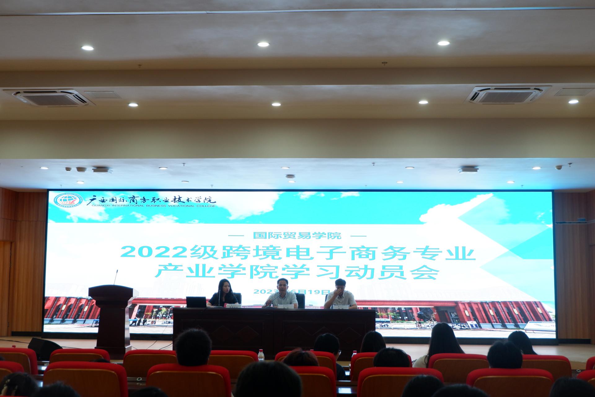 为了让2022级跨境电子商务专业学生提前了解产业学院的情况,更好地适应下一学年的学习和生活,6月19日,我院在东盟校区师生活动中心三楼报告厅召开2022级跨境电商专业赴产业学院学习动员大会。学院党总支专职副书记杨明、副院长吴涛、广西启迪创新跨境电子商务有限公司副总经理诸葛榕荷出席会议,校企双方辅导员、2022级跨境电子商务专业全体学生参加会议。
