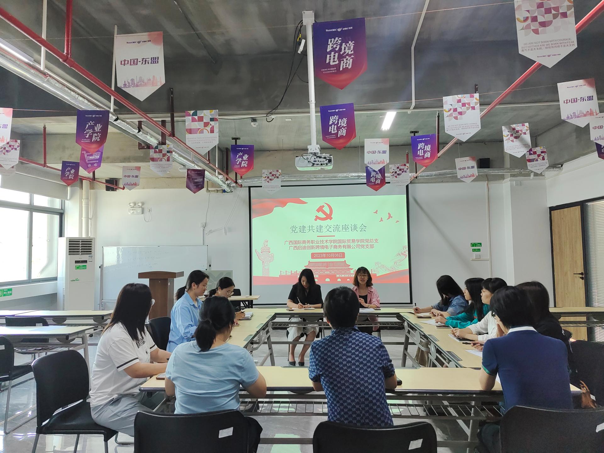 为深入学习贯彻党的二十大精神,进一步推进党建工作高质量发展,积极构建党建共建新模式,10月8日,国际贸易学院党总支与广西启迪创新跨境电子商务有限公司党支部开展党建共建学习交流。座谈会由国际贸易学院党总支书记邓菲主持,学院教工、学生支部书记、委员和党员代表,启迪创新跨境副总经理诸葛榕荷、党支部党员代表参加座谈。