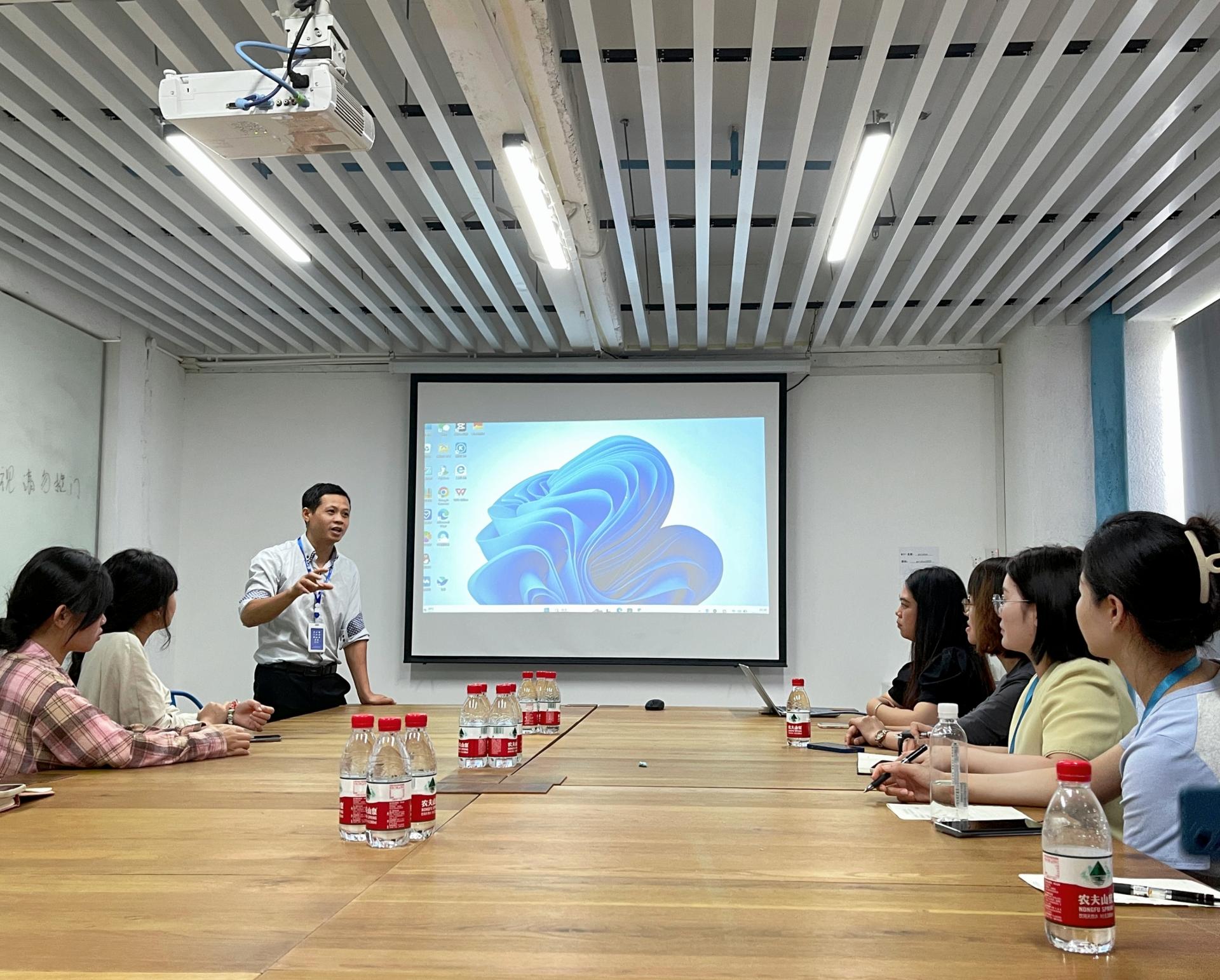 首先,抖动科技人力副总监覃兰岚带领邓菲一行参观了整个公司的办公环境,了解了各部门的建设和发展状况。随后,黎又元、任霞、赖明玉等三位讲师分别围绕新媒体素材库搭建、特色与品牌建设及宣传推广等内容进行了详细介绍。接着,双方针对当前宣传思想文化工作遇到的新挑战、新问题进行了深入探讨。最后,抖动科技总经理李雄开介绍了公司的发展历程、核心实力及技术创新等方面的成就,希望双方在宣传推广、人才培养、学生就业等方面开展多方位、深层次的合作。