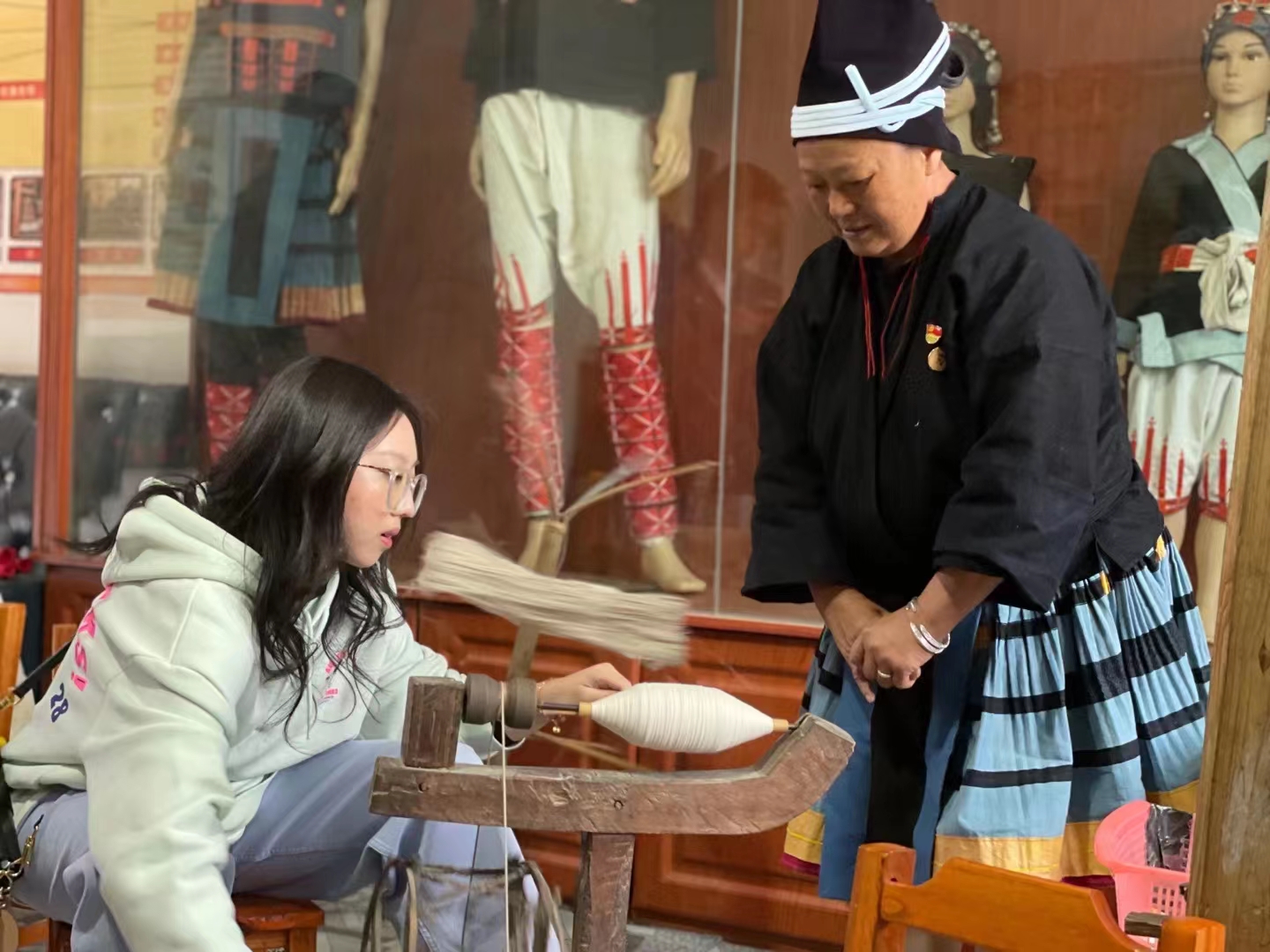在寻访国家级非遗传承人时,同行的印尼籍留学生代表郑雪慧感叹,“这次走进怀里村,感觉和我想象的农村差别很大,感到很震撼。这也是我第一次接触到瑶族文化,感受到了中华文化的魅力,体验感非常好”。学院此行通过组织留学生参与实地走访体验等方式,让外国青年能更深入了解中国脱贫攻坚成果和乡村振兴战略所带来的新变化新气象,感受更真实、立体、全面的中国。