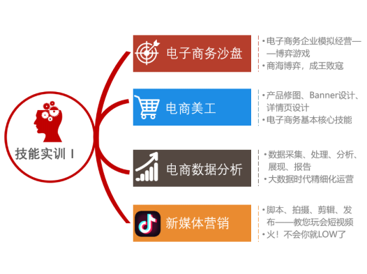 针对2023级电子商务专业的学生入学时间短、专业课程的学习时间也不长等特点,本次实训根据电商职业不同领域,分为电子商务沙盘、电商美工、电商数据分析、新媒体营销4个项目模块,由学生们选择其中1个模块进行实训。在老师的指导下,学生们对电商企业经营、电商美工设计、电商数据分析、短视频制作与推广都有了一定的认识,有助于学生们选择职业发展方向。