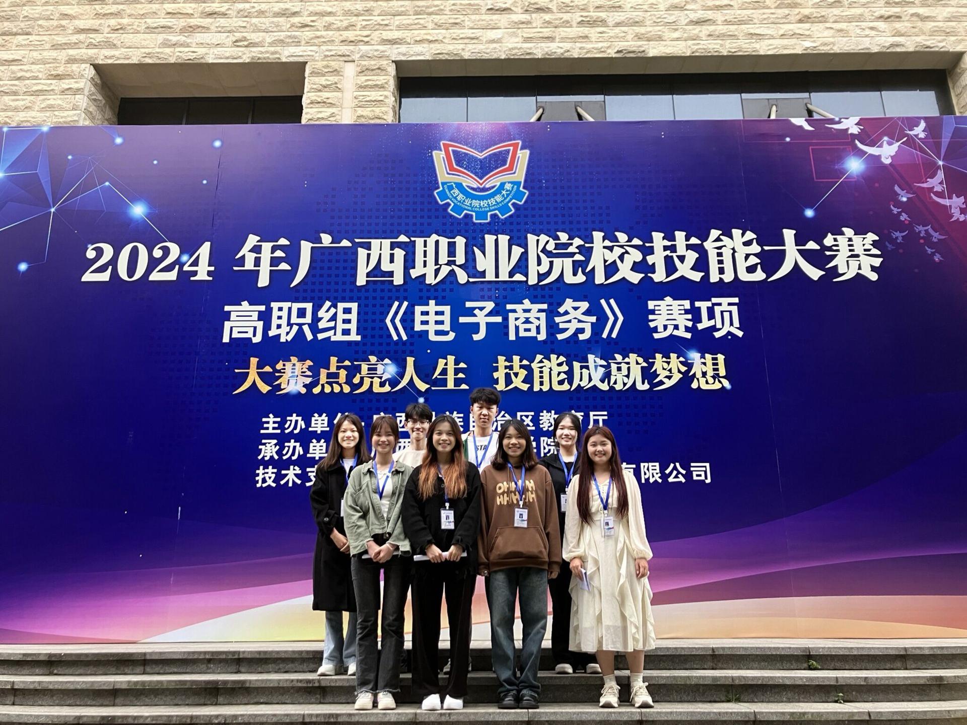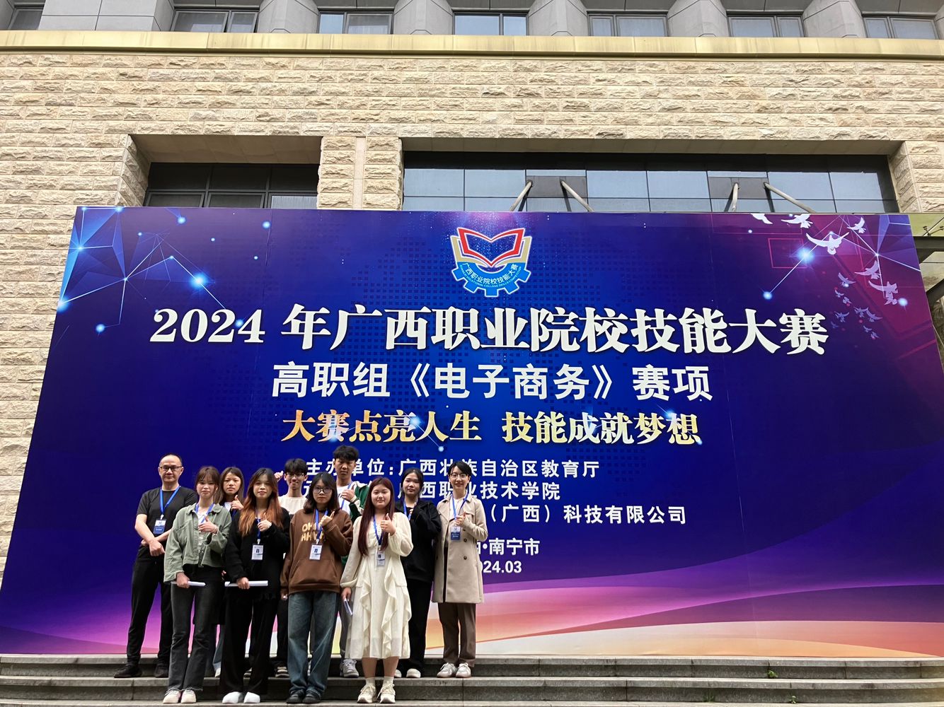 2024年3月18-19日,由自治区教育厅主办的2024年广西职业院校技能大赛高职组《电子商务》赛项在广西职业技术学院落下帷幕。来自全区35所学校的69支队伍参赛同台竞技,切磋技艺。我校派出的2支队伍8名选手严谨求实、沉着应赛,经过激烈的角逐,斩获了第五名和第三十三名的佳绩。