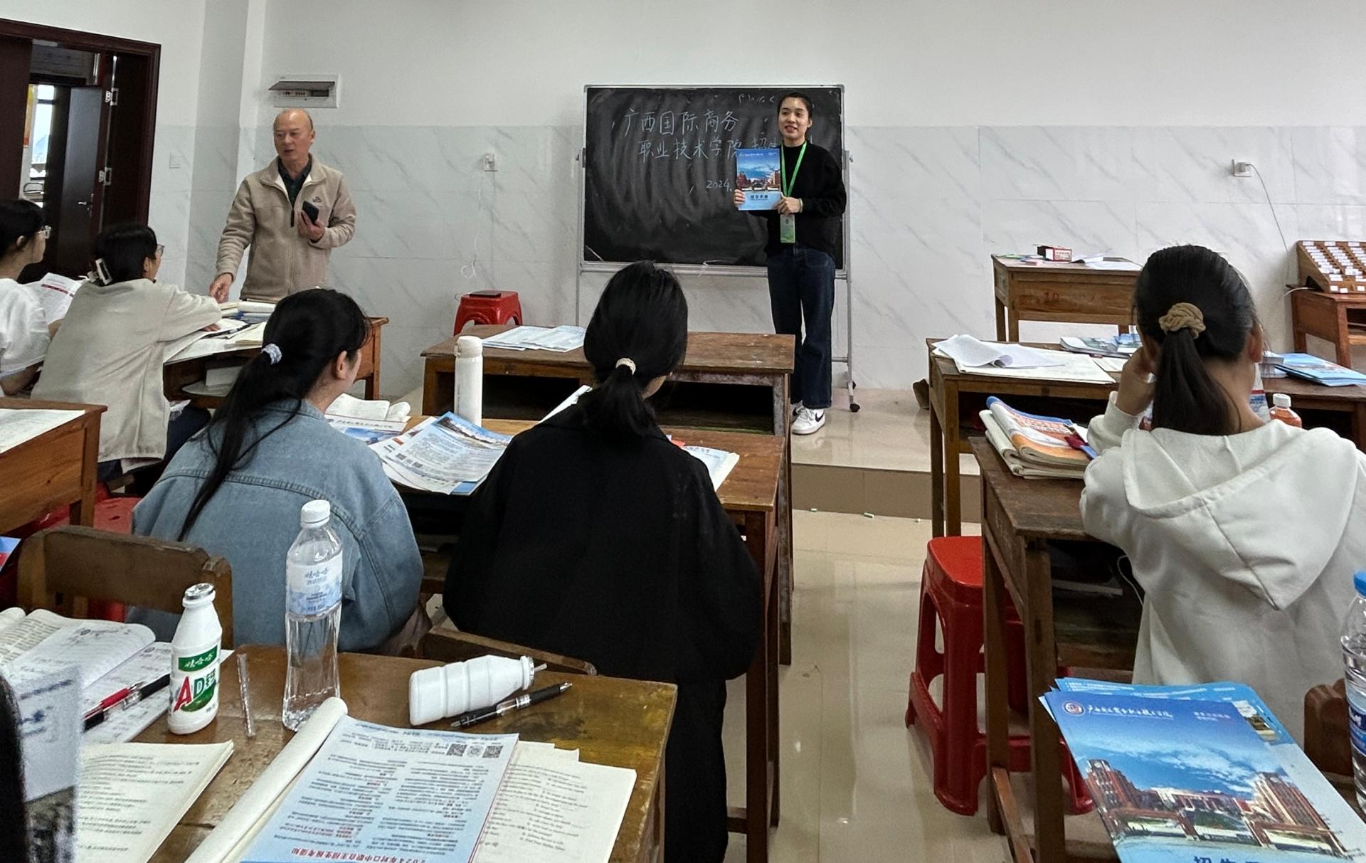 为进一步提升我校招生宣传工作广度,根据学校招生宣传工作安排,3月13日-20日,国际贸易学院教师代表及校企合作企业老师组成招生宣传工作小组赴玉林的博白、北流、兴业等20余所学校开展进校园招生宣传活动。与广大考生面对面交流,积极宣传学校办学条件、教育教学成果、“双高”建设成效等,热情解答学生问题,全心、全力、全方位开展招生宣传工作。