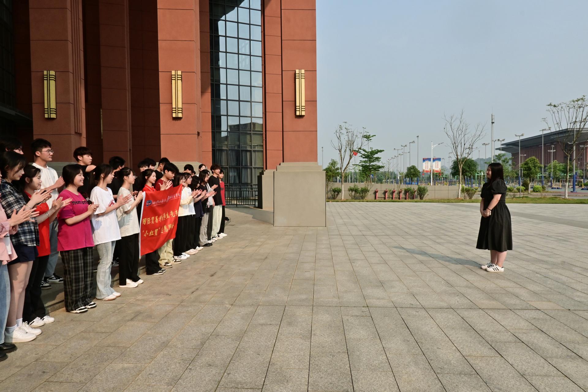 活动伊始,李根宣读了《国际贸易学院学生党支部关于成立“小红贸”志愿服务队的通知》,覃俭为服务队授旗。