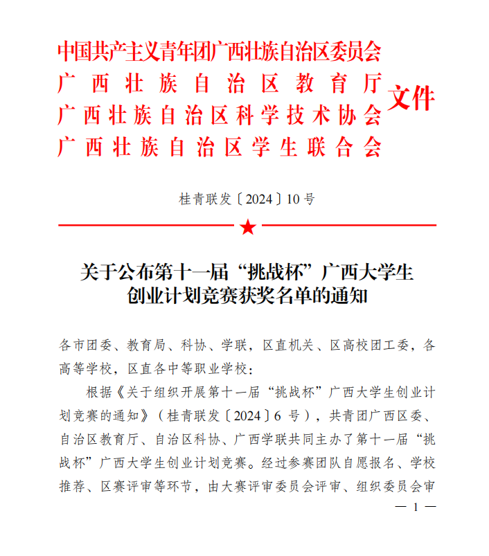 近日,由共青团广西区委、自治区教育厅、自治区科协、广西学联共同主办的第十一届“挑战杯”广西大学生创业计划竞赛获奖名单公布,我院师生团队打造的《桂衿出海--贸贸公社推动数字商务赋能非遗手工艺产业发展》项目在激烈的竞争中荣获银奖。