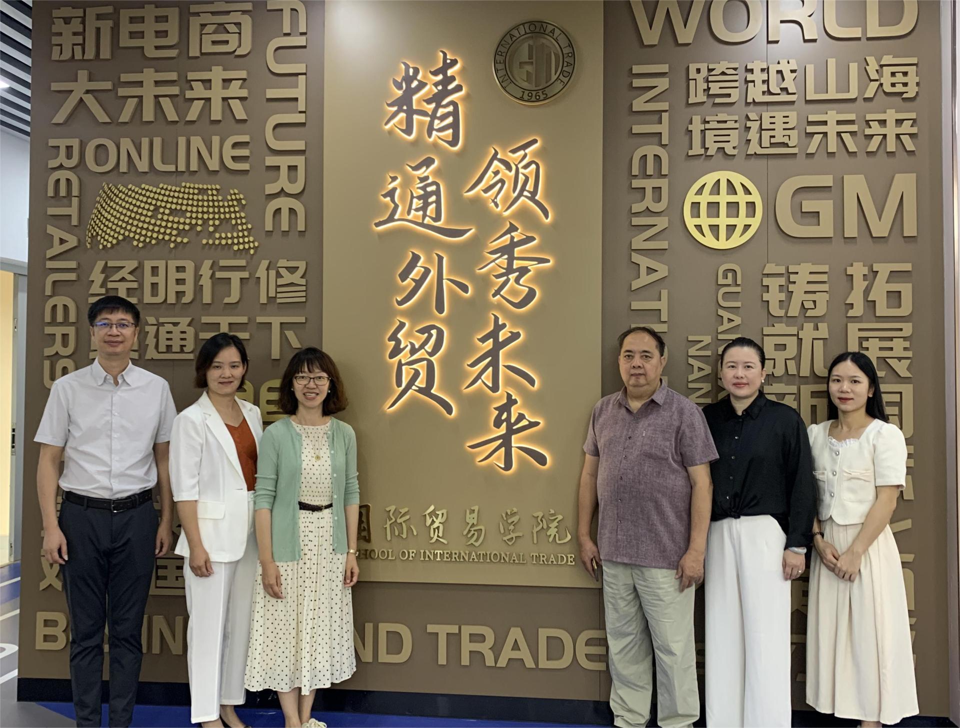 7月3日,斯中社会文化合作协会中国分会主任黎炳森、秘书长陈靓与西南办公室主任李彦羲到访国际贸易学院,国际贸易学院党总支书记邓菲、副院长吴涛等热情接待,带领黎炳森一行三人参观了跨境商务产教融合创新中心,探讨校企合作的途径与可行性。