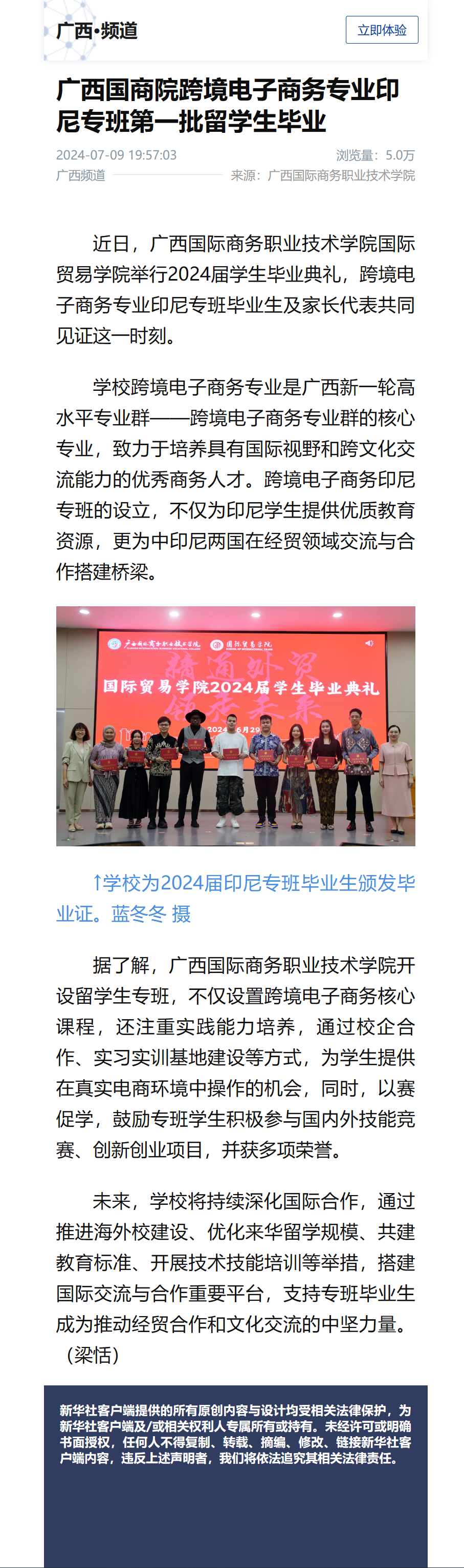 【新华社】广西国商院跨境电子商务专业印尼专班第一批留学生毕业