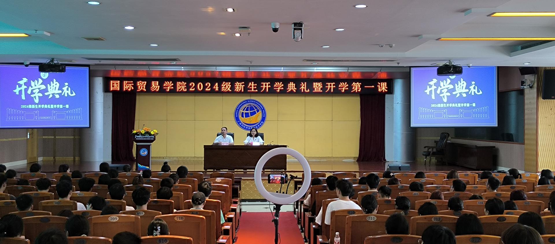 9月5日、9月6日,国际贸易学院先后在大学路校区、东盟校区举行2024级新生开学典礼暨开学第一课。学院党总支书记邓菲、院长邓海涛、党总支专职副书记杨明出席典礼。典礼由杨明主持。1219名新生参加典礼并聆听开学第一课,他们满怀希望,从这里开启“精通外贸 领秀未来”的新征程。