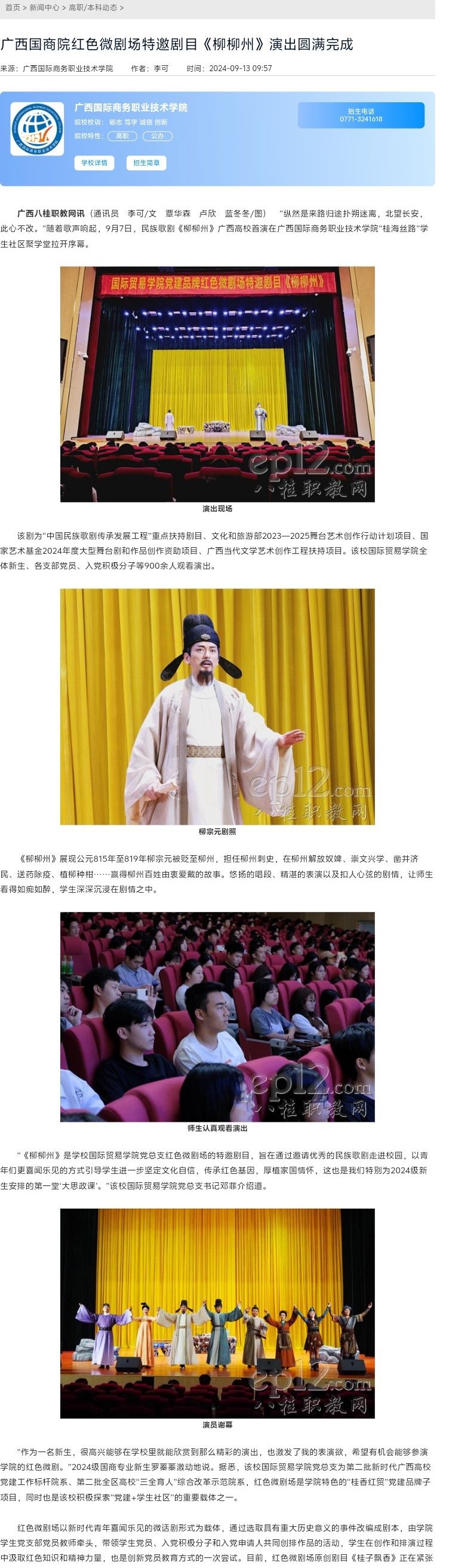 【广西八桂职教网讯】广西国商院红色微剧场特邀剧目《柳柳州》演出圆满完成