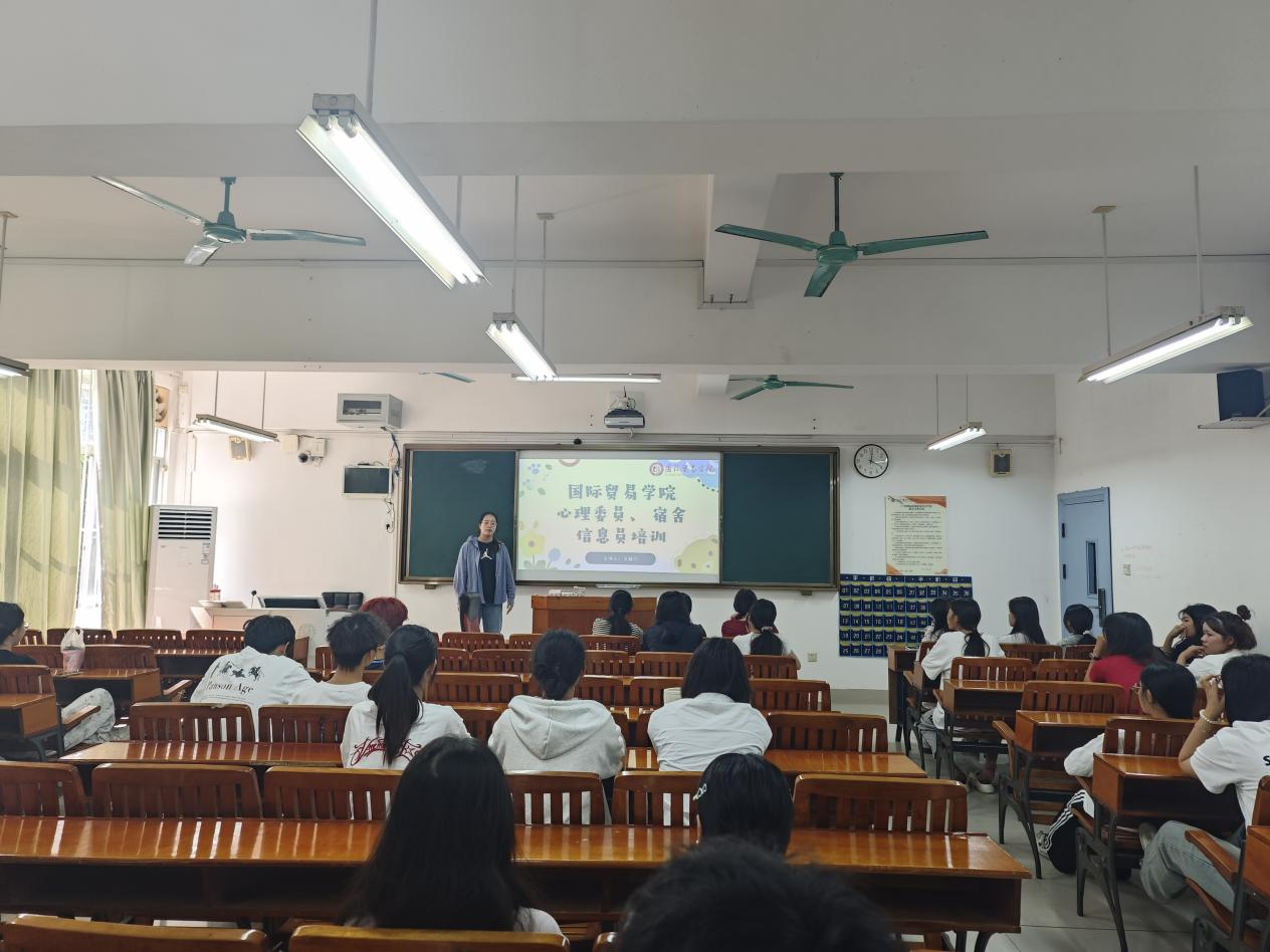 为进一步提升大学生心理健康服务水平,加强学生心理骨干队伍建设,国际贸易学院于11月14日成功举办了学生心理骨干培训。此次培训由学院心理工作站副站长陈雨琦老师、韦颖玥老师共同主讲,旨在增强学生心理骨干的责任意识,提升其识别与应对心理问题的能力,从而更好地服务于广大师生。
