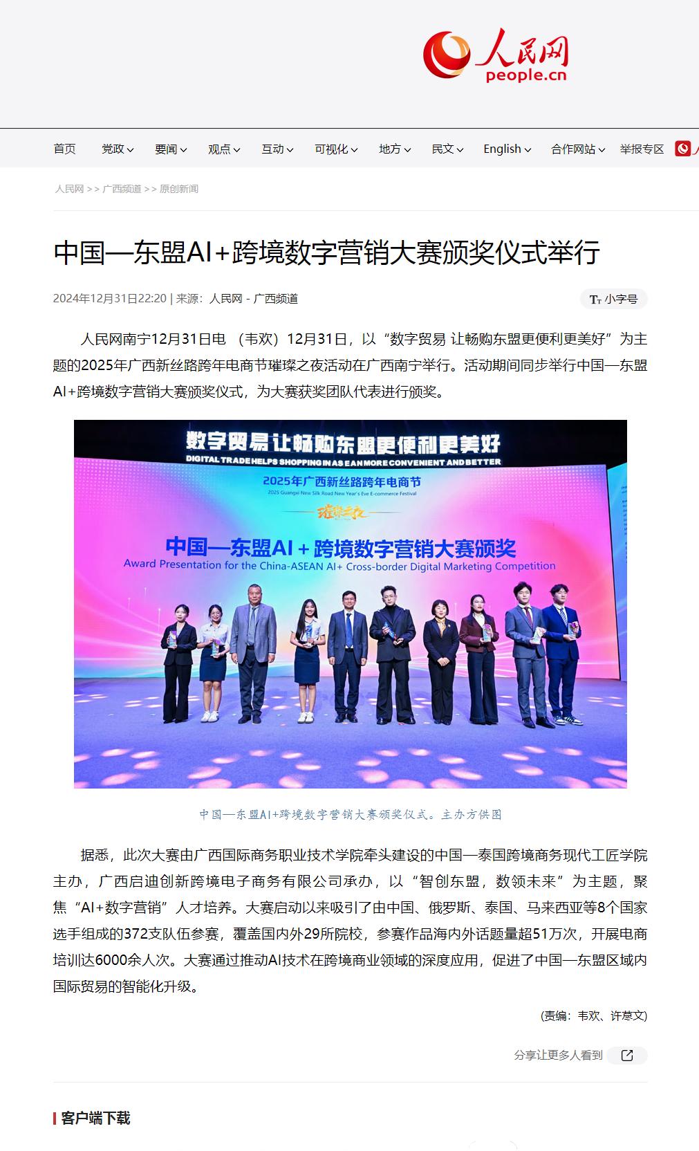 【人民网】中国—东盟AI+跨境数字营销大赛颁奖仪式举行
