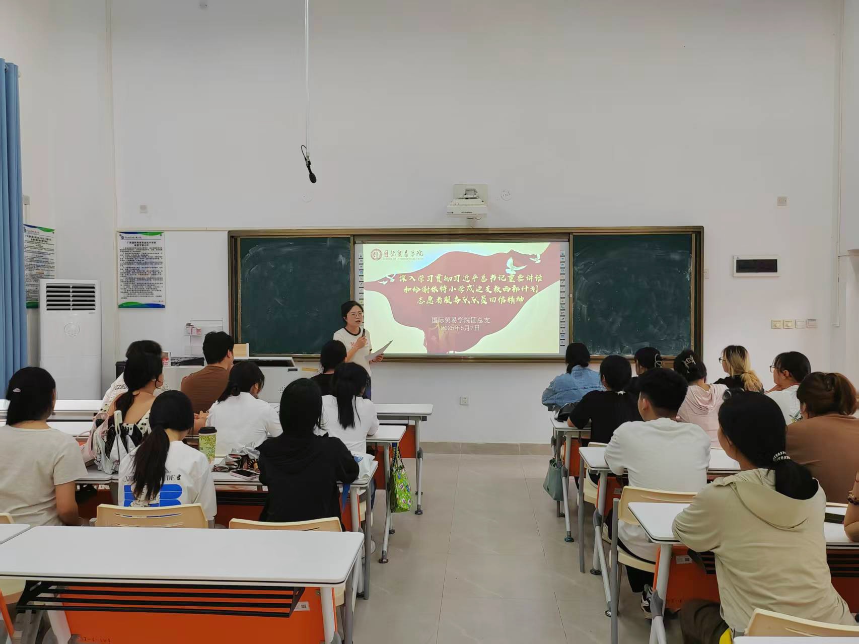 5月7日,国际贸易学院团总支积极响应号召,聚焦习近平总书记给谢依特小学戍边支教西部计划志愿者服务队全体队员的重要回信精神,开展了一场意义深远的主题团课。团课由学院团总支负责人覃俭老师主讲,全体团学干部积极响应,分别在东盟校区、大学路校区和产业学院参与学习。