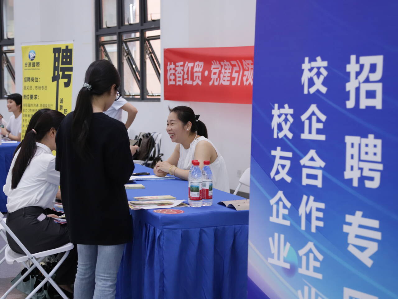 为进一步拓宽学生实习就业渠道,精准搭建“求职”与“招贤”的互动平台,党建引领下深化就业育人工作,国际贸易学院联合会计学院、金融经济学院于2025年6月10日上午在东盟校区图书馆一楼成功举办2025年财会金融外贸行业专场双选会。此次招聘会创新采用三院联动通过场外摆展,馆内宣讲模式,吸引了大量优质企业和2023级学生参与,现场气氛热烈。