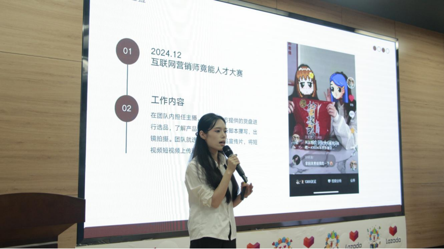 跨境数字营销:学生分组打造48个IP账号,创作内容引爆流量,单条视频播放量突破176.8万次,单账号30天累计播放量最高达404.4万次,增长势头迅猛;同时完成29场直播实训,累计超100小时,实现“粉丝量-播放量-转化率”三维度环比增长超 150%,营销能力初露锋芒。