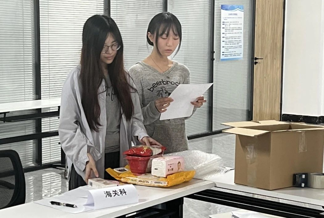 保税仓储物流与海外仓:学生在南宁综合保税区内分组扮演报关员、仓管员、运输调度、海关关员等角色,高度还原保税仓作业全流程,亲身体验跨境电商订单履约的紧张节奏与规范操作。