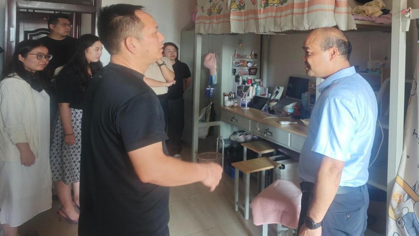 随后,莫秋树一行深入产业学院课堂,观摩企业真实项目驱动的教学场景,并走进学生宿舍实地查看住宿条件。在与学生代表的座谈中,莫秋树详细询问饮食保障、外出通勤及生活困难,认真记录学生诉求,要求全力协调解决实际问题,为学生营造良好成长环境。