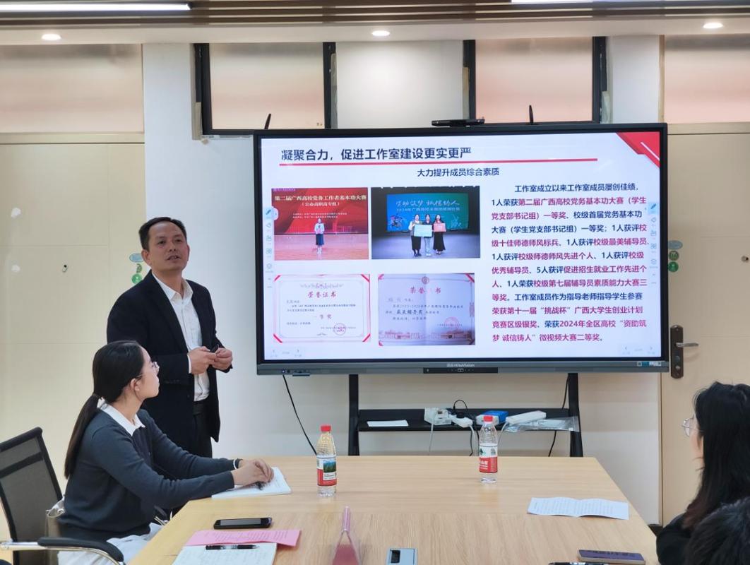 在主题分享环节,辅导员们结合自身工作实际,围绕主题进行深入探讨。莫颖颖、杨世梅、李金露、李可四名辅导员从自身参赛经历出发,分享了参赛获奖的感悟和收获。辅导员们以赛为镜查找自身不足,通过以赛促学不断提升自身的专业素养和应对能力。