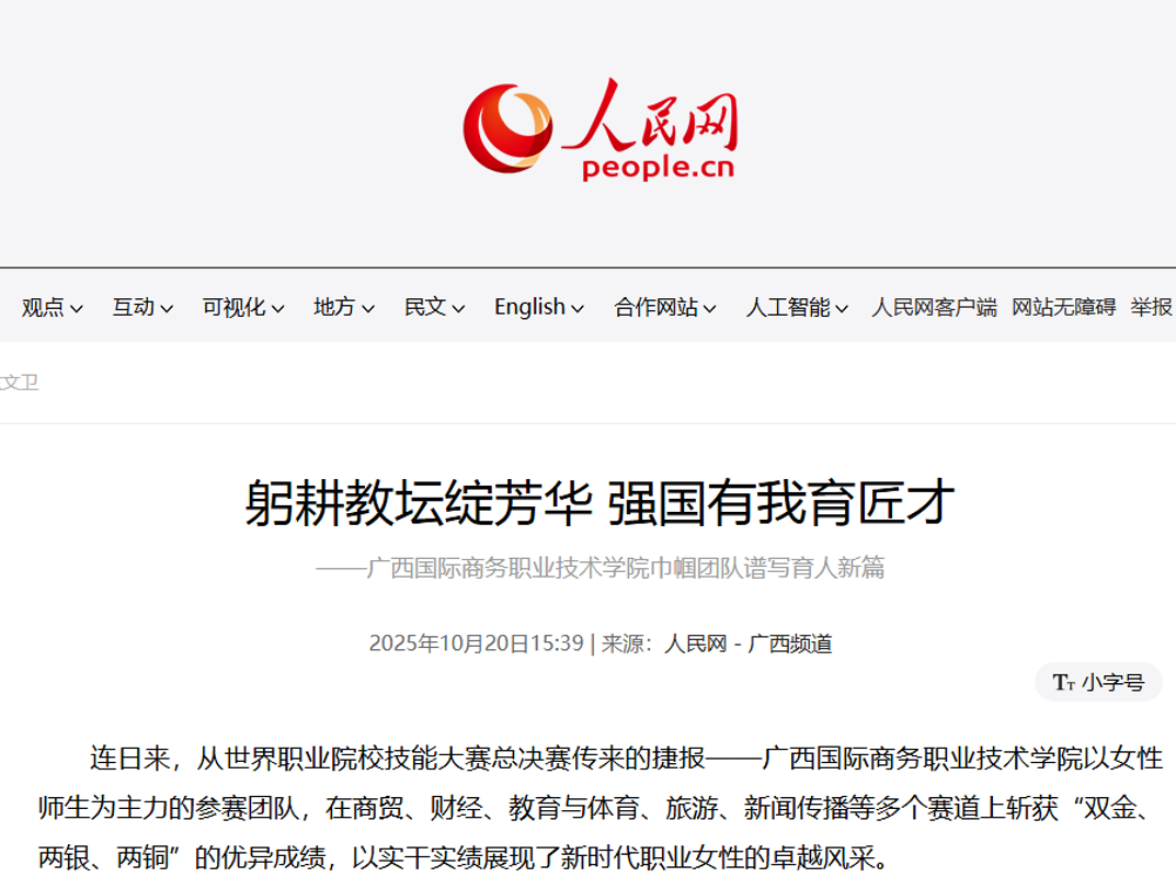 【人民网】躬耕教坛绽芳华 强国有我育匠才--广西国际商务职业技术学院巾帼团队育人谱写新篇
