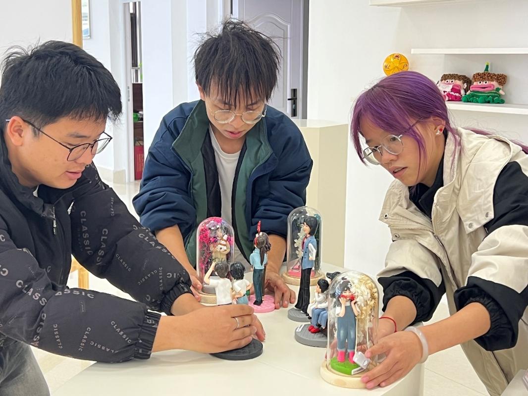 实践体验活动环节中,全体人员共同参与布置“桂融优品”广西助残就业产品展示厅。大家首先听取了廖源基于“AI技术+社会技术服务”设计的展厅布置方案介绍,随后“小红贸”志愿服务队的成员们在吴薇指导下动手实践,细致分类、有序陈列手工艺品与农产品,优化展区布局,有效提升展示效果。整个过程充分展现了我院师生严谨务实、服务基层的优良风貌,也体现了我院在社会技术服务输出方面的专业优势。