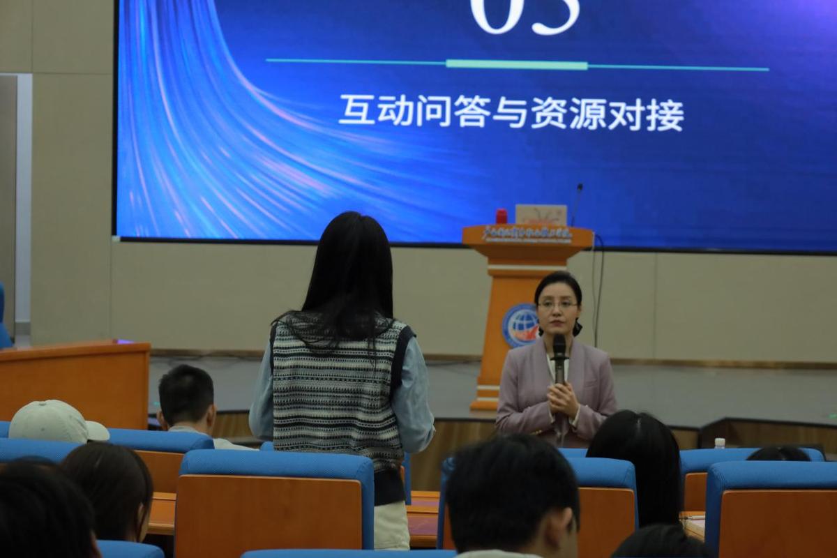 在交流环节,现场互动频频、气氛热烈。同学们围绕关务数字化转型、区域产业布局新动态,以及职业准入要求、岗位能力、职业发展、岗位晋升路径、薪酬发展潜力等就业相关疑问踊跃提问。杨玉芳结合真实案例与多年行业洞察,逐一拆解疑问。她鼓励学生“既要懂规则,又要会工具”,在扎实学习RCEP原产地规则等政策的同时,主动熟悉智慧通关系统操作,提升数据思维与合规意识。现场交流深入、掌声不断,许多同学表示:“原来课堂上的理论知识,在真实业务中是这样应用的!”