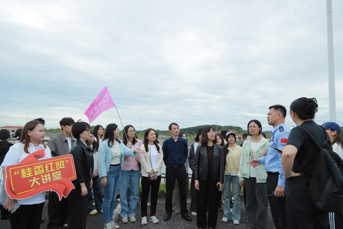 在2025年秋季学期技能进阶周期间,国际贸易学院党总支书记邓菲以及关务与外贸服务专业50名师生赴东兴边境口岸,开展以“沿边开放平台建设与口岸外贸服务创新”为主题的实地调研。本次调研作为学校B1类专业技能强化模块项目,依托“实景真训·驻点验证”三阶九步实践教学体系,将“口岸课堂”搬到边贸一线,系统推进学生能力转化与岗位对接。