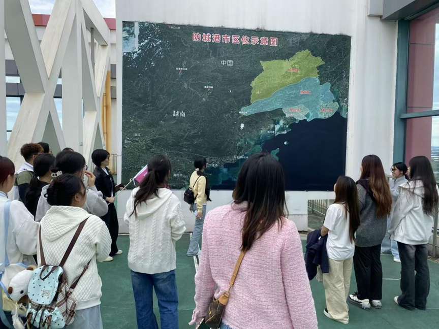 登上“第一国门”观景台,师生在真实场景中理解“一带一路”设施联通内涵,完成从政策认知到战略理解的思维跃升。“站在这里,教材中的许多陌生通关场景和概念不再抽象,而是眼前的海关监管区、川流不息的货车与有序的通关流程。”24关贸1班刘绚琦如是说。