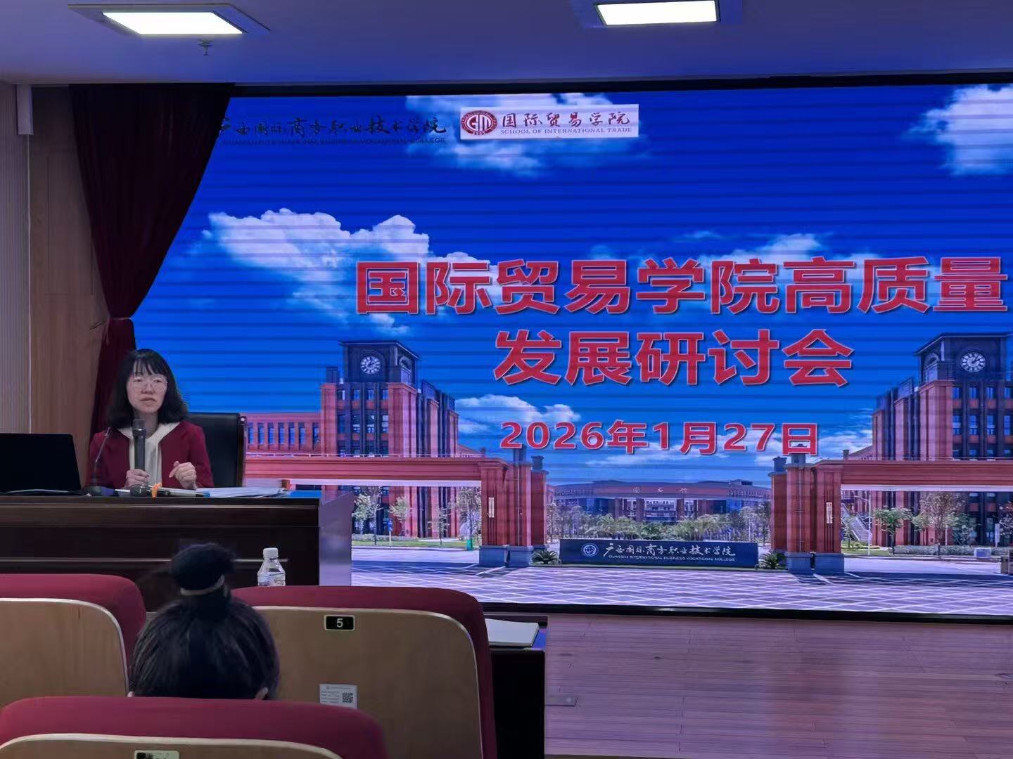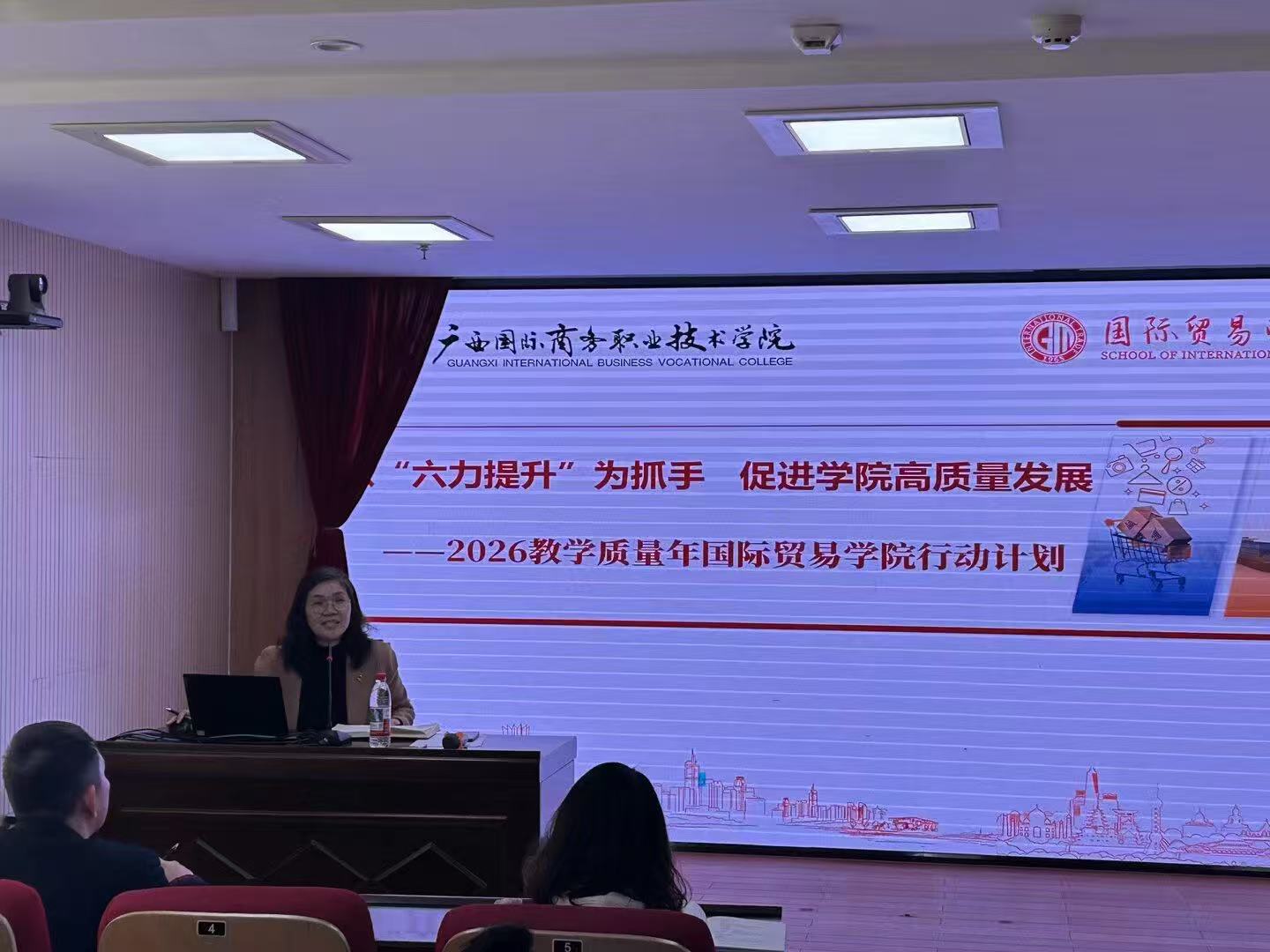 2026年1月27日上午,国际贸易学院高质量发展研讨会在学校图书馆8楼小报告厅召开,学院全体教职工齐聚一堂,为学院发展共谋新布局。