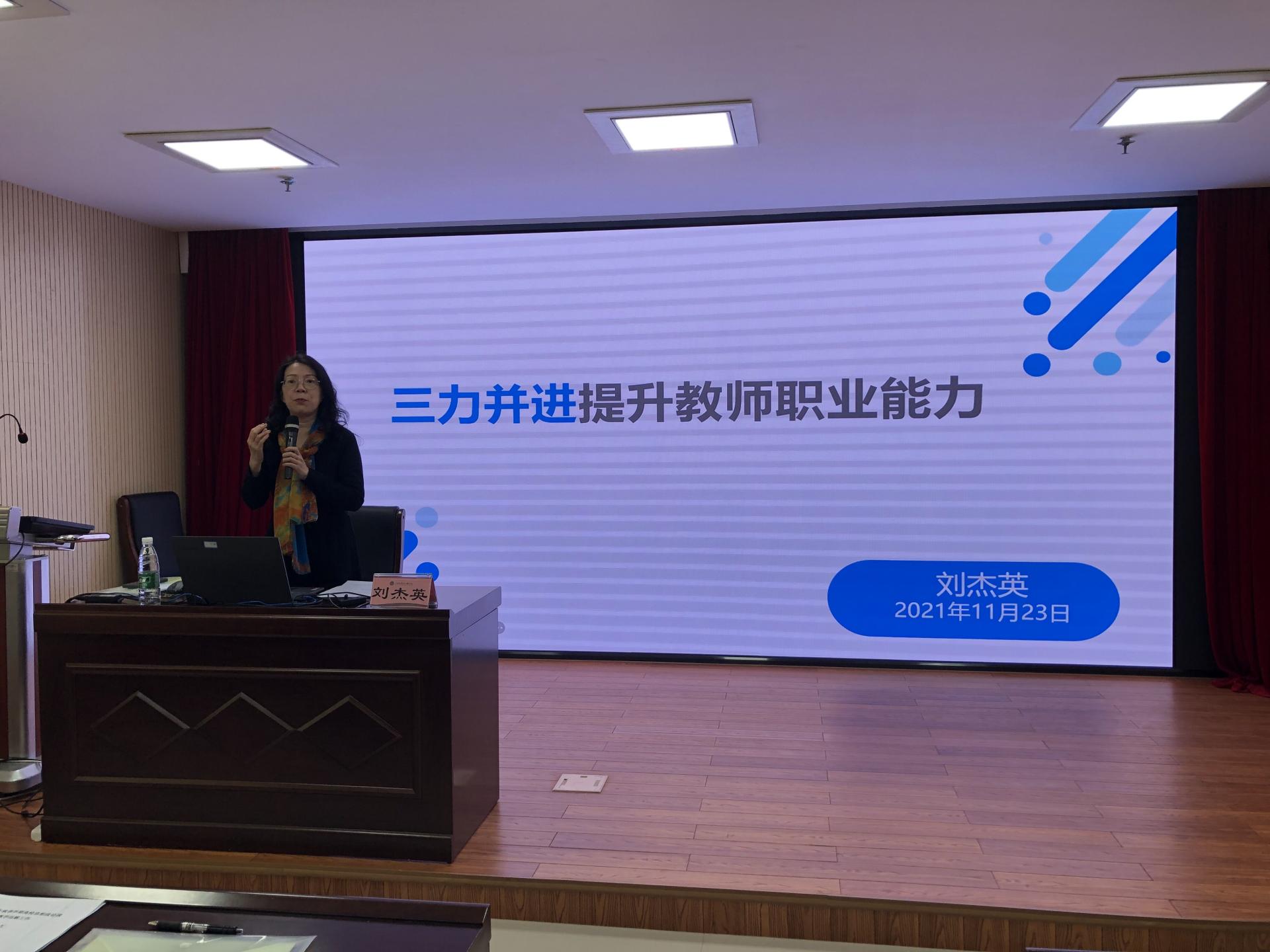 讲座中,刘杰英副校长结合自身多年丰富的教学经验,围绕教学能力、创新能力和服务能力三个维度,从新时代新要求、“三力”的本质内涵、校企合作和职教融合的途径、教师发展“五特”模型的案例等四个方面展开讲授,讲座内容主题鲜明、逻辑清晰、内容丰富、案例典型,对进一步提升教师队伍的职业能力建设具有很强的针对性和指导性。