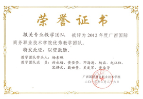 国际商务单证课程教学团队被评为2012年学院优秀教学团队