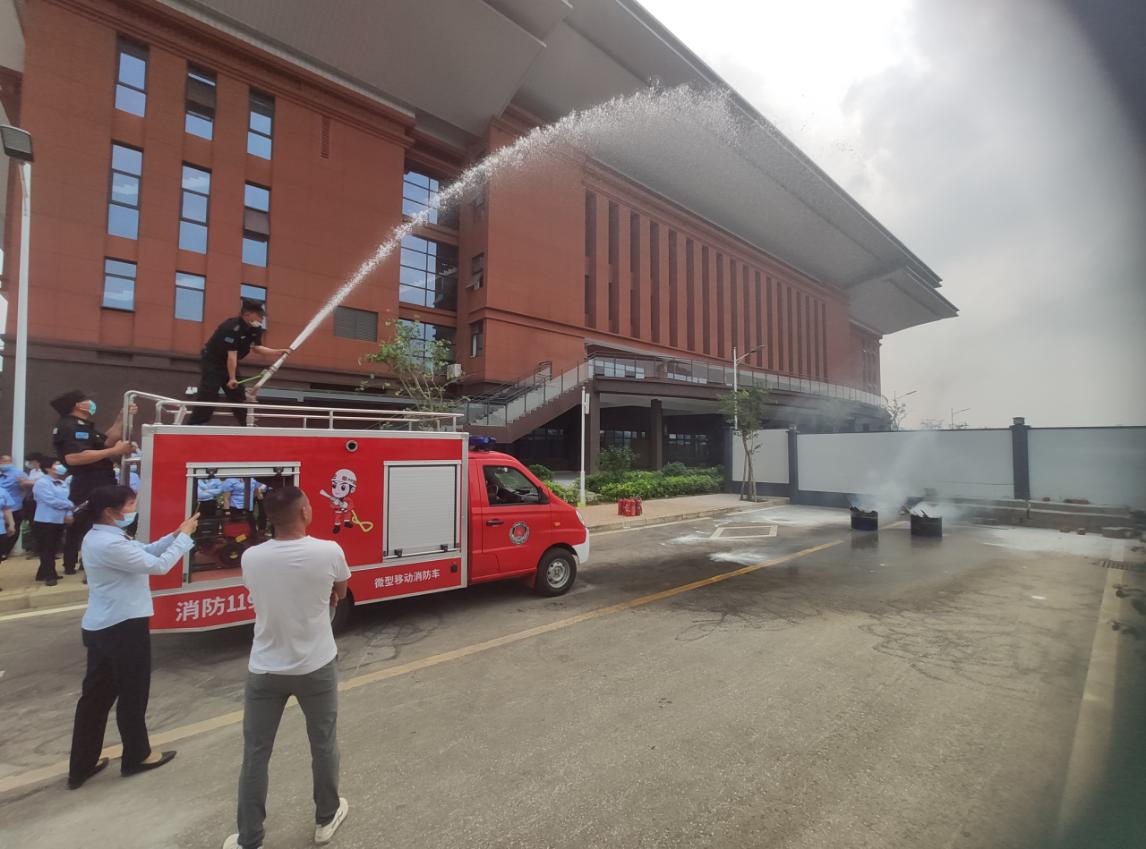 为了提高员工动手操作能力,分别进行了灭火模拟演练及消防水带的使用体验。