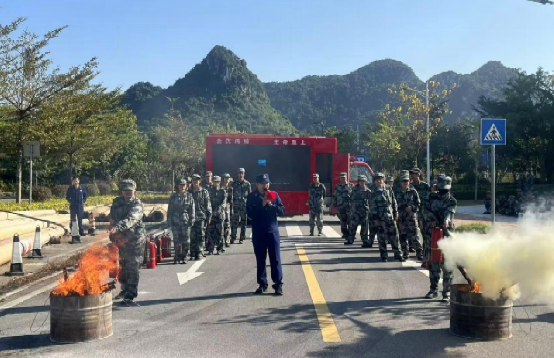此次培训特别邀请了广西—东盟经济技术开发区消防救援大队刘湘凝同志进行现场讲解和示范。他首先就有关火灾现场的应急处置方案,灭火器的原理、基本操作方法及注意事项进行一一讲解。随后,在消防救援部门专业人员的指导下,消防安全应急疏散演练开始了。伴随着熊熊燃烧的大火,警报声响起,各班学生面对迅速蔓延的大火,用毛巾捂住口鼻,低头弯腰俯身,沿着紧急疏散示意图指示的路线,快速有序地撤离到安全区域。