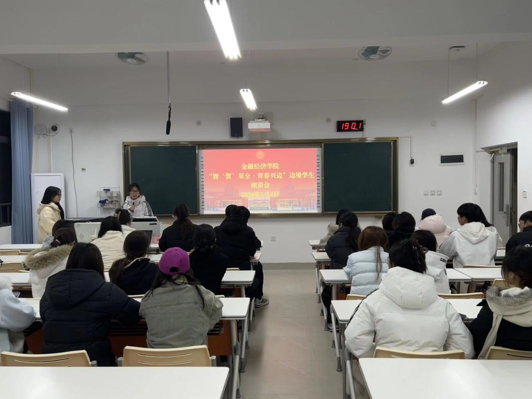 1月4日,金融经济学院“智‘贸’双全·青春兴边”边境学生座谈会圆满举行。来自广西8个边境县市的学生代表齐聚一堂,与学院赵辉副院长、李萍老师、潘婳老师围绕边境贸易发展、专业实践赋能、人才成长路径等议题深入交流,搭建起“专业学习-实践锻炼-服务家乡”的双向奔赴桥梁。座谈会以“政策解读+成...