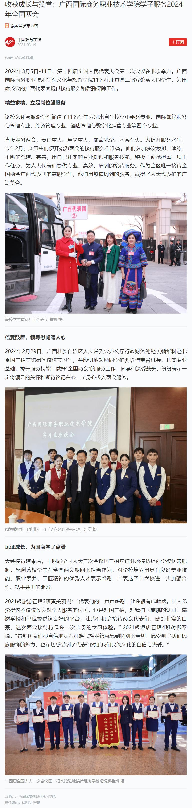 【中国教育在线】收获成长与赞誉:广西国际商务职业技术学院学子服务2024年全国两会