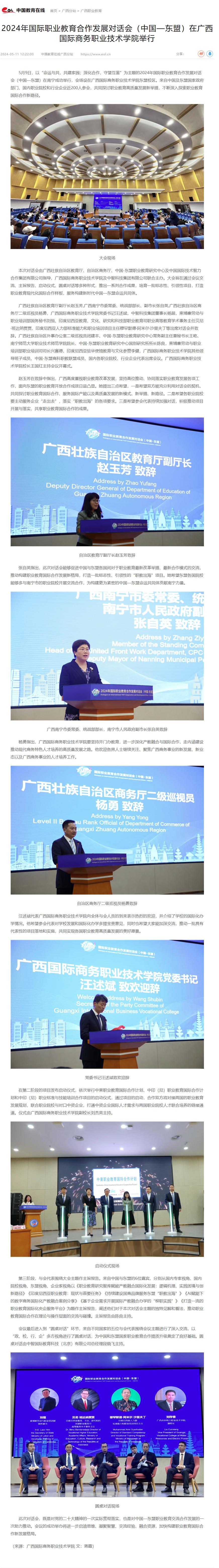 【中国教育在线】2024年国际职业教育合作发展对话会(中国--东盟)在广西国际商务职业技术学院举行